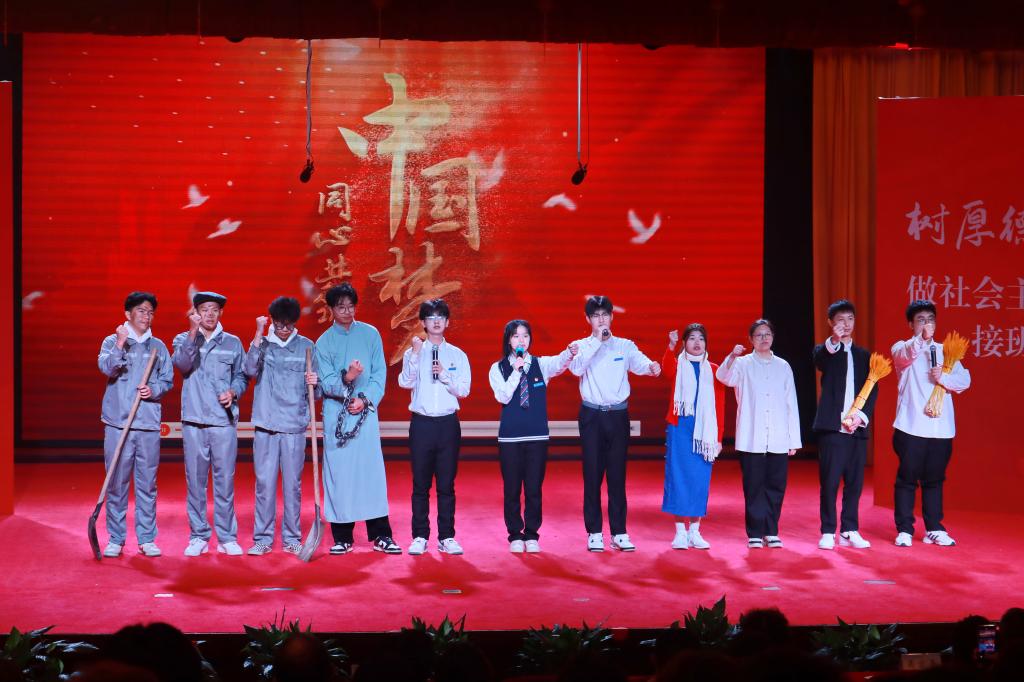 为深入学习贯彻党的二十大精神,进一步丰富思政课实践教学形式,提升思政教育针对性、亲和力,11月16日,校党委宣传部和马克思主义学院在水韵剧场举办“学思践悟二十大 踔厉奋发新征程”暨思政课实践教学成果展示活动。校领导及师生代表出席线下会场,1万多名师生通过网络直播观看活动。