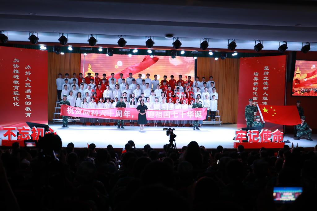 “我和我的祖国,一刻也不能分割,无论我走到哪里,都流出一首赞歌……”最后随着《我和我的祖国》感人旋律,在场师生全体起立,挥动国旗,激情合唱,共同祝福祖国。全体同科人将牢记初心使命,唱响主旋律,畅想新未来,发出同科人在新时代的最强音。