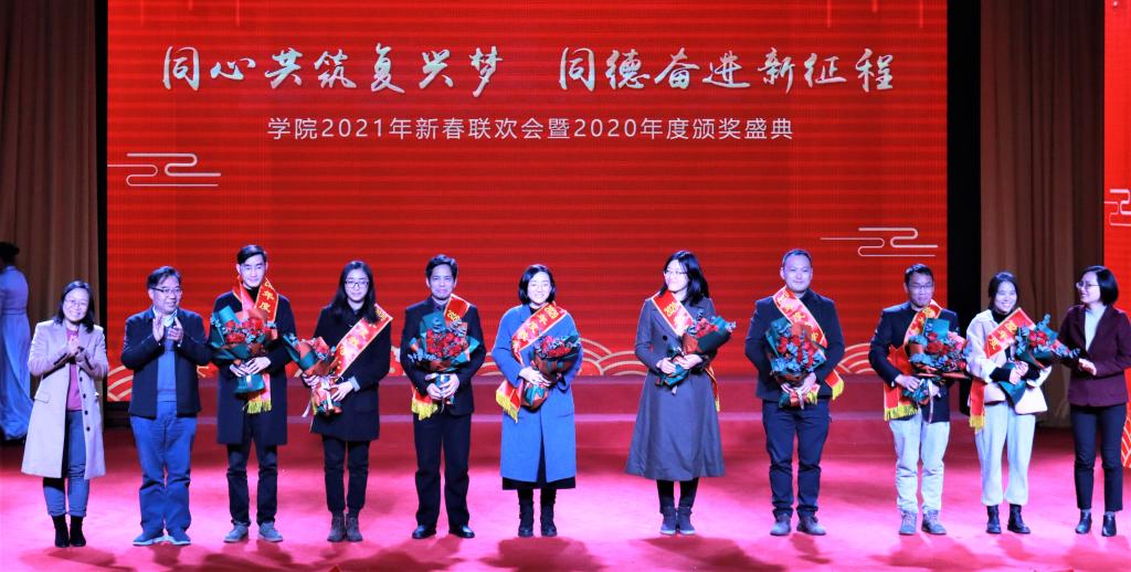 12月30日晚,学院“同心共筑复兴梦·同德奋进新征程”2021年新春联欢会暨2020年度颁奖盛典在水韵剧场举办。省水利厅党组成员、人事教育处处长张日向,厅团工委书记朱绍英、厅人事教育处副处长周函应邀出席晚会,全体学院领导及师生代表共300余人欢聚一堂,喜迎新年。