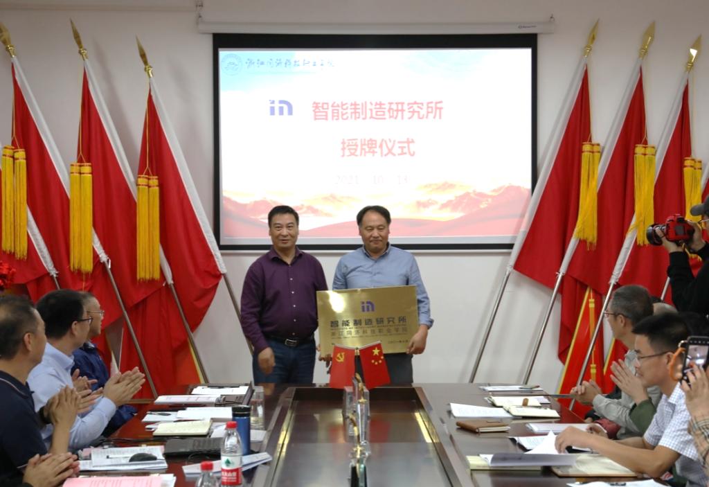 会上,江影书记为浙江省第一批省级课程思政教学项目——智能制造及运维专业群课程思政工作站揭牌,朱兆平副校长为智能制造研究所授牌。教师代表蒋帆和辅导员代表胡馨予分别就师德师风建设作表态发言,副院长孙连栋对思政工作站建设进行了总体布置,明确工作目标与任务。