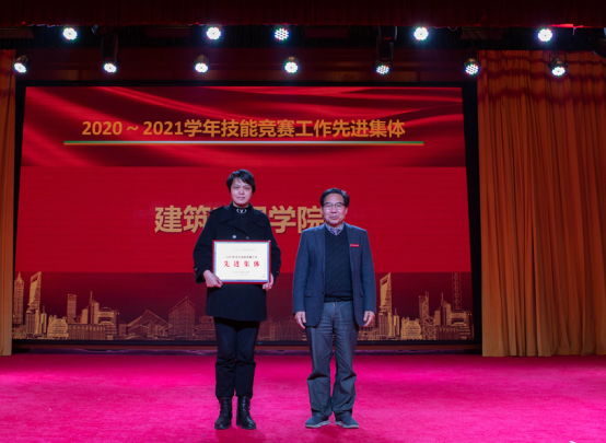 梁国钱校长为2021年学校“技能竞赛工作先进集体”颁发证书