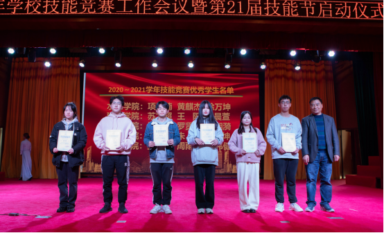 2021年学校共组织学生647人次参加了35个一类赛事,获取奖项73个,其中获得国家级奖项8个。在组织和参加技能竞赛过程中也涌现了一批优秀学生、教师和集体,会上对学校第20届技能节比赛获奖选手、2021年度技能竞赛工作优秀个人和集体颁发了获奖证书。