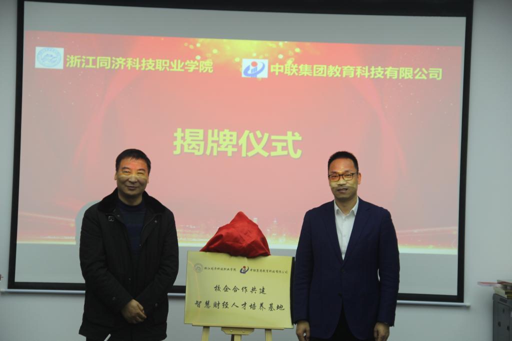 为培育适应数字经济时代需要的高技能和卓越财经人才,并进一步探索产教融合、协同育人机制,实现专业与产业、企业岗位对接,走出传统财经的荒漠,跨入智慧财经的绿洲。12月2日上午,我校经信学院与中联集团教育科技有限公司举行共建“智慧财经产业学院”签约暨揭牌仪式。中联集团教育科技有限公司副总裁冯学平,华东区校企合作总监陈涛,浙江区负责人朱文明,我校副校长朱兆平出席,教务处、发展合作处、经信学院负责人,大数据与会计专业部教师代表等参加了签约揭牌仪式。
