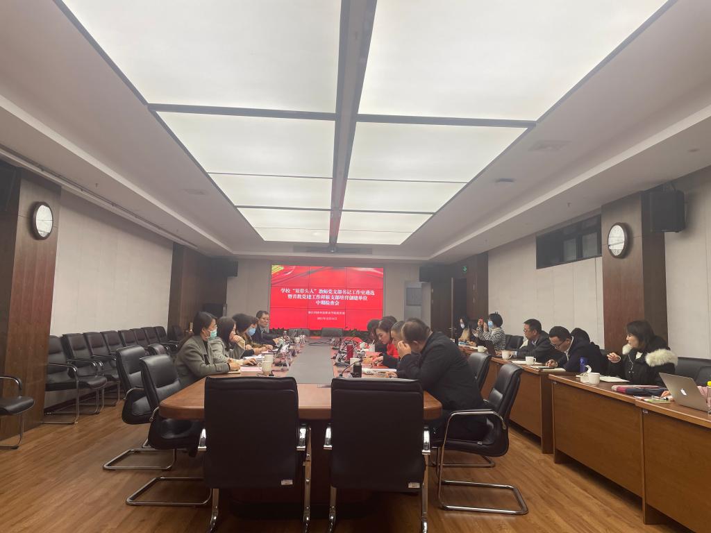 为进一步加强教师党支部建设,深入探索党建工作与业务工作相融合的工作机制,提升基层党支部组织力,推动我校党建工作质量不断提升。12月14日下午,学校组织部组织了“双带头人”教师党支部书记工作室遴选,同时,对学校首批党建工作样板支部培育创建单位进行中期检查。学校党委书记江影,党委副书记、副校长吴宏平,党委委员、组织部部长吴玲洪,宣传统战部部长吴敏启出席会议并担任评选专家,会议由组织部部长吴玲洪主持。