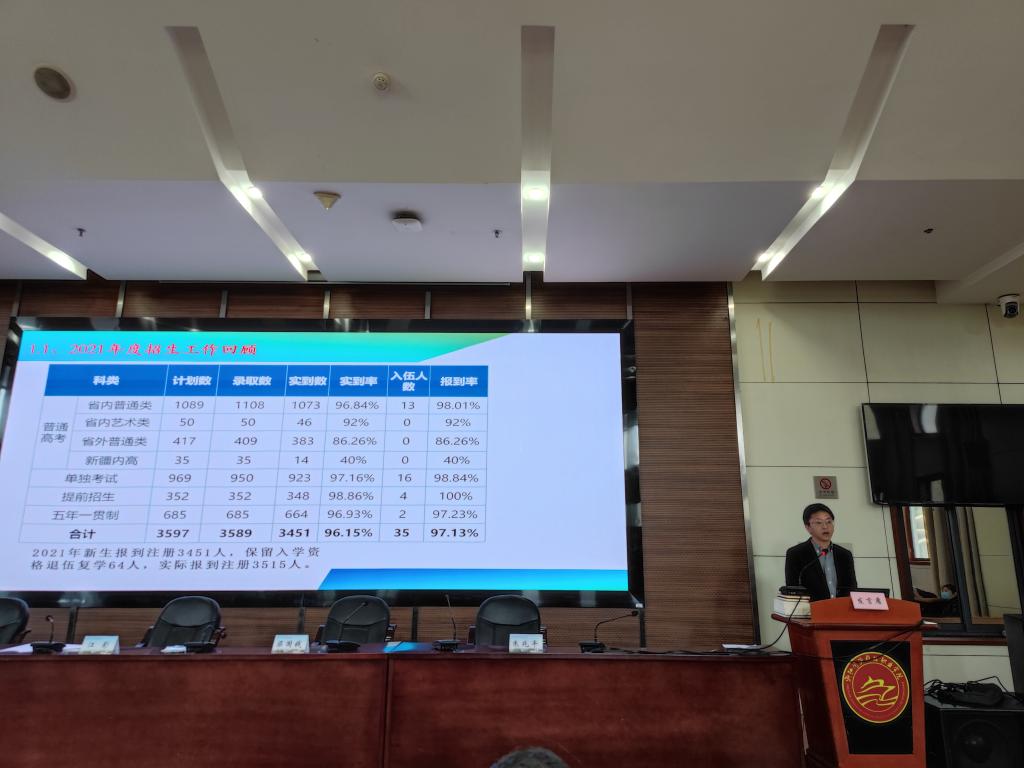 3月25日,2022年招生就业工作推进会暨人才培养质量调查工作布置会在行政楼一楼报告厅举行。党委书记江影,党委副书记、校长梁国钱,党委委员、副校长沈自力,党委委员、副校长朱兆平出席会议。沈自力副校长主持会议。相关职能部门负责人、各二级学院党政负责人和全体专业部主任、就业辅导员等参加会议。