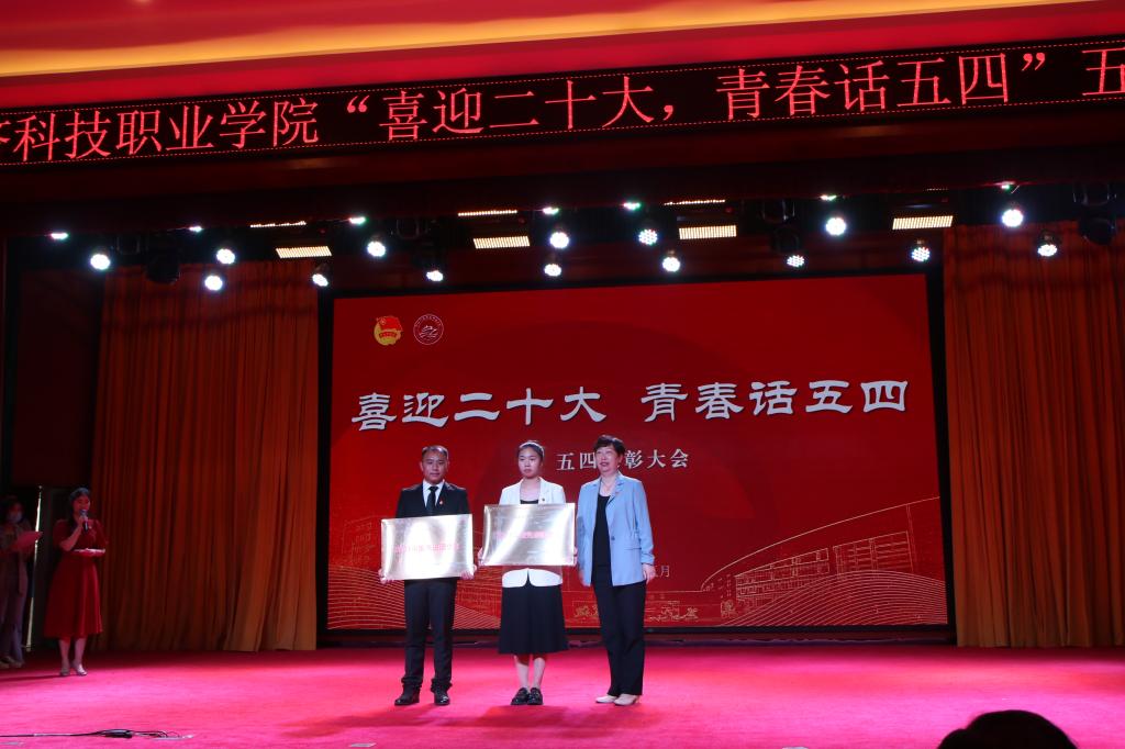 表彰大会上,与会师生还一同观看了庆祝中国共产主义青年团建团100周年宣传片《共青春》和情景剧表演《我是一名志愿者》,聆听了学校思政微课一等奖获得者郑传娟老师和王玉章同学带来的思政微课《让青春在追逐时尚中闪光》和《山河已无恙吾辈当自强》。