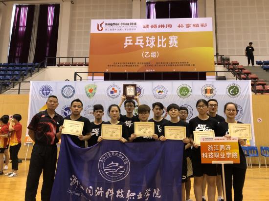 浙江省第十五届大学生运动会共设10个大项目,四年一届,由省教育厅、省体育局主办,省大学生体育协会协办,是我省大学生最高级别的赛事。虽然比赛强手林立,但在学院领导关心下,教练员和运动员发扬“特别能吃苦、特别能战斗、特别能奉献”的精神,辛勤工作、刻苦训练,最终取得了优异的成绩。我院乒乓球项目是省高校体育特色项目,本届比赛的胜利再次证明了我院乒乓球项目一流的竞技水平,提升了学院知名度。