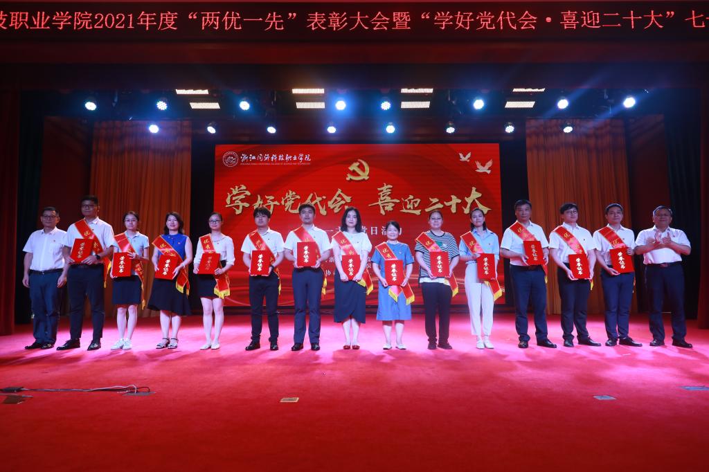 为庆祝中国共产党成立101周年,学习贯彻浙江省第十五次党代会精神,激励广大党员不忘初心,砥砺前行,7月1日上午,我校在瓯江楼水韵剧场举行2021年度“两优一先”表彰大会暨“学好党代会·喜迎党的二十大”七一主题党日活动。参加活动的有在校校领导和师生党员同志。活动由党委副书记、副校长吴宏平主持。