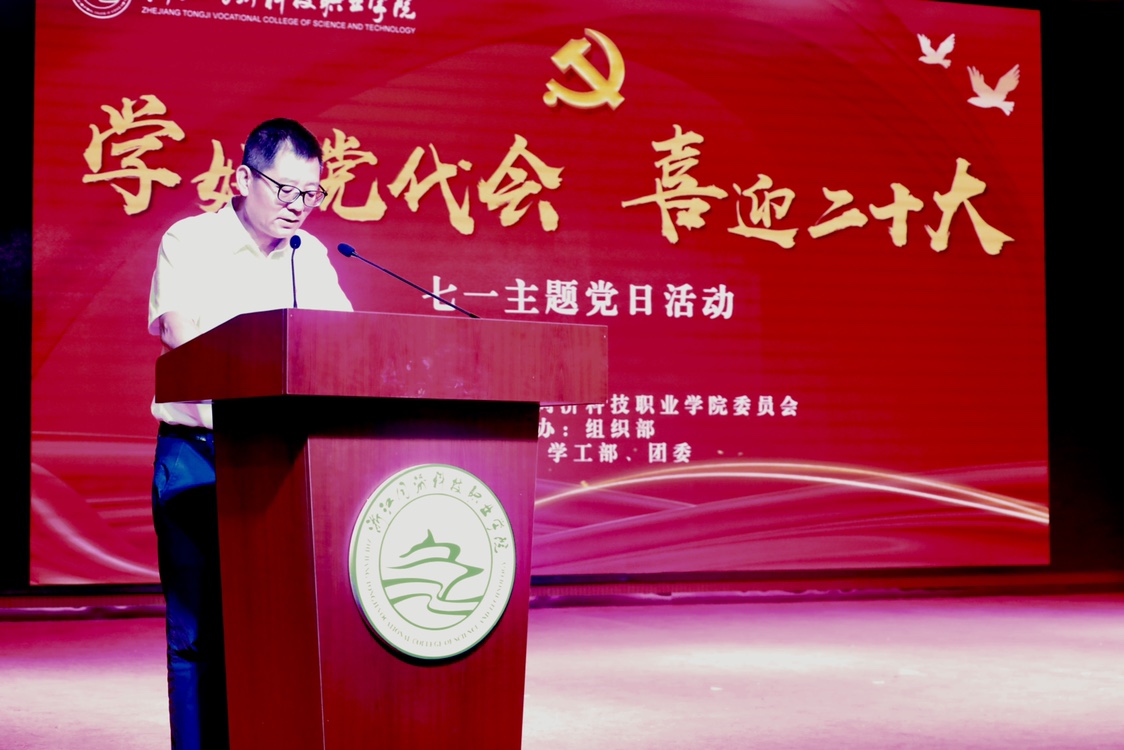党委副书记、校长梁国钱代表学校党委向全体党员表示节日的祝贺,他肯定了学校过去一年的党建工作,并表示回望过去这一年,我们对初心使命的理解更加坚定,对改革发展的路径更加明晰,党建引领的成果更加丰硕。同时,梁校长也对全体党员提出了期望和要求。一是要学好党代会,做“两个先行”的奋斗者。我们要学好党代会精神,高举习近平新时代中国特色社会主义思想旗帜,忠实践行“八八战略”,坚决做到“两个维护”。二是要牢记初心使命,旗帜鲜明讲政治。要以守好“红色根脉”、当好“排头兵”的政治自觉,将思想和行动统一到凝心聚力谋发展上来,始终保持政治定力。三是要坚持党建引领,推动学校各项事业发展。充分发挥党组织的战斗堡垒作用和党员的先锋模范作用,在各项争先创优活动中取得突破,为学校各项工作增添更有分量的成果,以实际行动迎接党的二十大胜利召开。