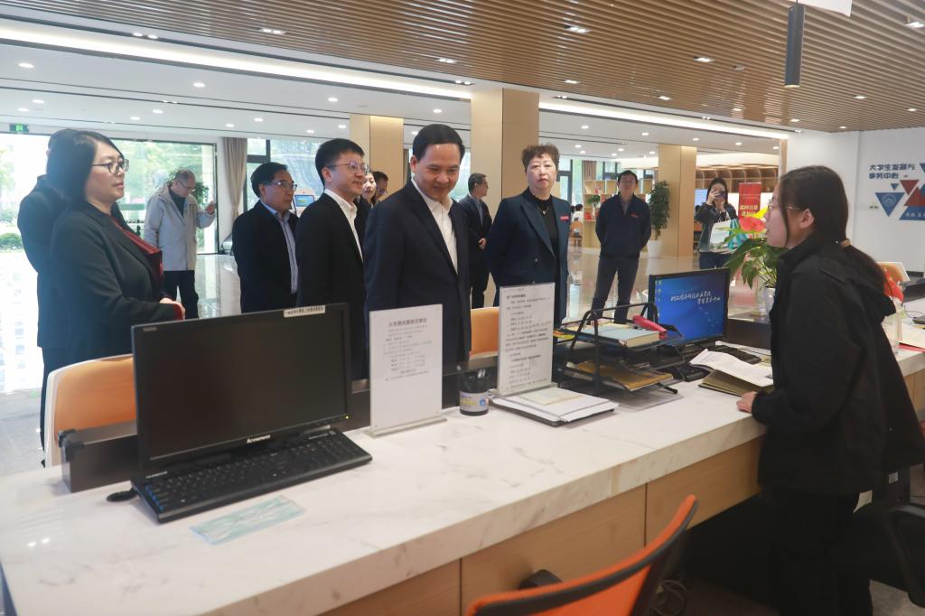 温暖副书记一行首先听取了学校党委书记江影对学校办学情况的介绍,实地走访了学校伟人文化育人成果展厅、大学生发展与事务中心、水利实训中心等思政育人、教学实训场所。对我校立德树人、人才培养、产教融合等工作进行了重点调研。在河道修防虚拟仿真实训中心,温暖与正在实训的学生亲切交谈,并在学生邀请下体验学校VR技术等先进实训设备。在伟人文化育人成果展厅,温暖一行在学生讲解员的引导下,观看了学校“周恩来班”“邓颖超班”创建活动的历史和成果。