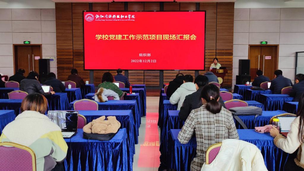 12月2日下午,学校在行政楼三楼报告厅举行党建工作示范项目现场汇报会。学校党委副书记、副校长吴宏平,党委委员、纪委书记应芬,党委委员、组织部部长、人才办主任吴玲洪,党委委员、宣传统战部部长吴敏启出席活动并担任评委。学校党委工作部门相关负责人、各党总支、直属党支部书记、专职组织员、相关党务工作者参加活动。