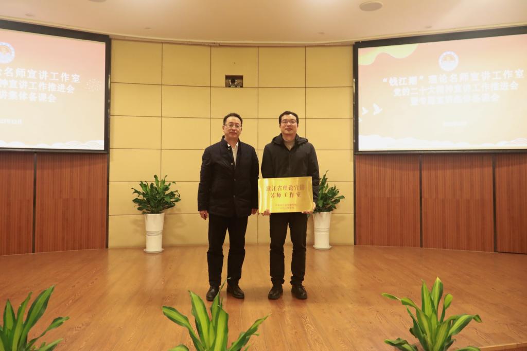 张日向为工作室授“浙江省理论宣讲名师工作室”铜牌