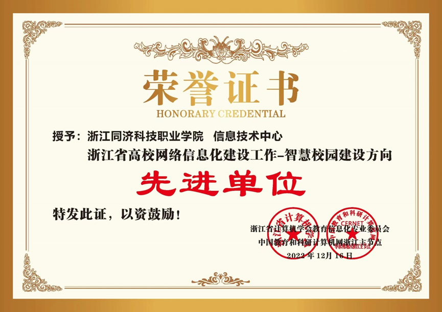 近日,浙江省计算机学会教育信息化专业委员会、中国教育和科研计算机网浙江主节点联合表彰了一批高校网络信息化建设先进单位和先进个人。我校喜获“2022年浙江省高校网络信息化建设工作先进单位——智慧校园建设方向”、“2022年浙江省高校网络信息化建设先进单位--网络安全方向”两项荣誉,王昌云荣获“浙江省高校网络信息化建设工作先进个人”。