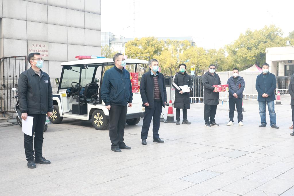 1月10日下午,学校党委书记张勇、校长王卫标,校领导姜伟、朱兆平、吴敏启等深入一线看望并慰问坚守工作岗位的安保及后勤保障人员,感谢工作人员的辛苦付出,祝福大家新年吉祥、阖家欢乐。