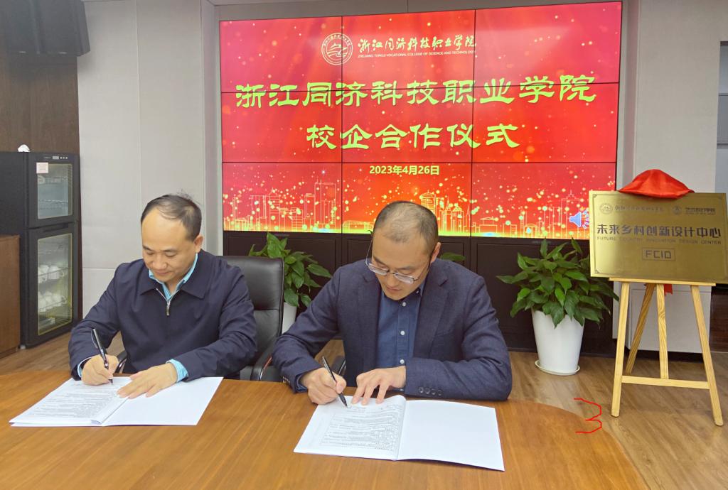 仪式上,朱兆平副校长为“未来乡村创新设计中心”揭牌,并为德戍控股集团旗下浙江海实水利工程咨询有限公司和浙江定阳水利技术服务有限公司授牌“校企合作基地”。随后,艺设学院与两家公司分别签署了“共同富裕背景下滨水环境设计与文化建设技术服务”和“基于乡村振兴背景下水生态建设与文化振兴技术服务”校企合作协议书。