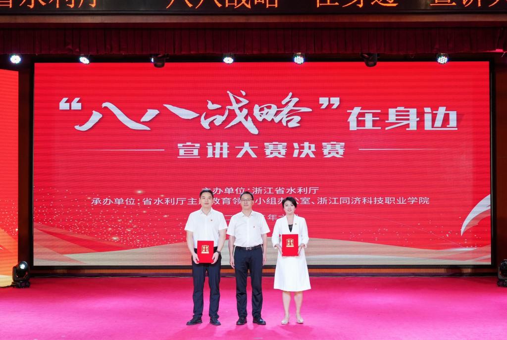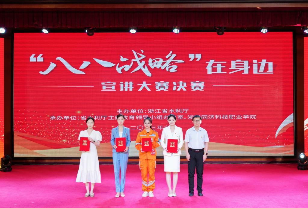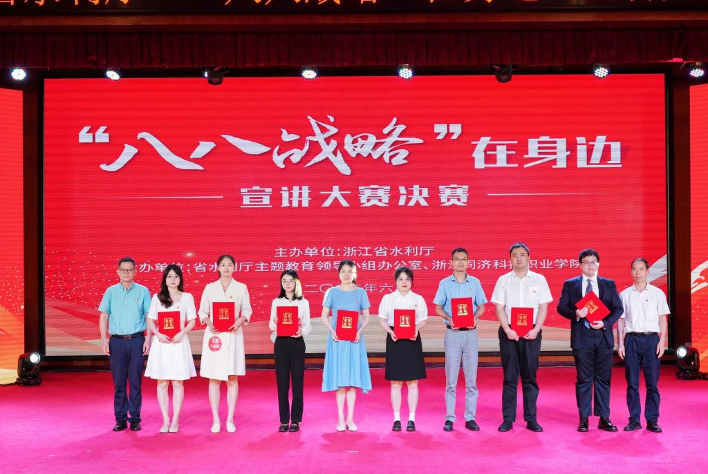 6月25日,由省水利厅主办,省水利厅主题教育办公室与我校联合承办的“‘八八战略’在身边”宣讲大赛决赛在瓯江楼水韵剧场举行。省水利厅党组成员、厅主题教育领导小组副组长张日向致辞,省委主题教育第十一巡回指导组成员、省交通发展研究中心副主任吴坚到场指导。《宣传半月刊》编辑部主任张丽红,省“金马先声”理论宣讲名师工作室负责人、浙江金融职业学院马克思主义学院院长牛涛,浙江广电集团教科影视频道党建节目部主任焦征远,省水利厅直属机关党委专职副书记、厅主题教育办副主任王新辉,省水利信息宣传中心主任邢云担任大赛评委。学校领导张勇、吴宏平、吴玲洪、吴敏启出席活动,来自厅机关处室、厅属单位代表以及我校师生党员到场观摩。