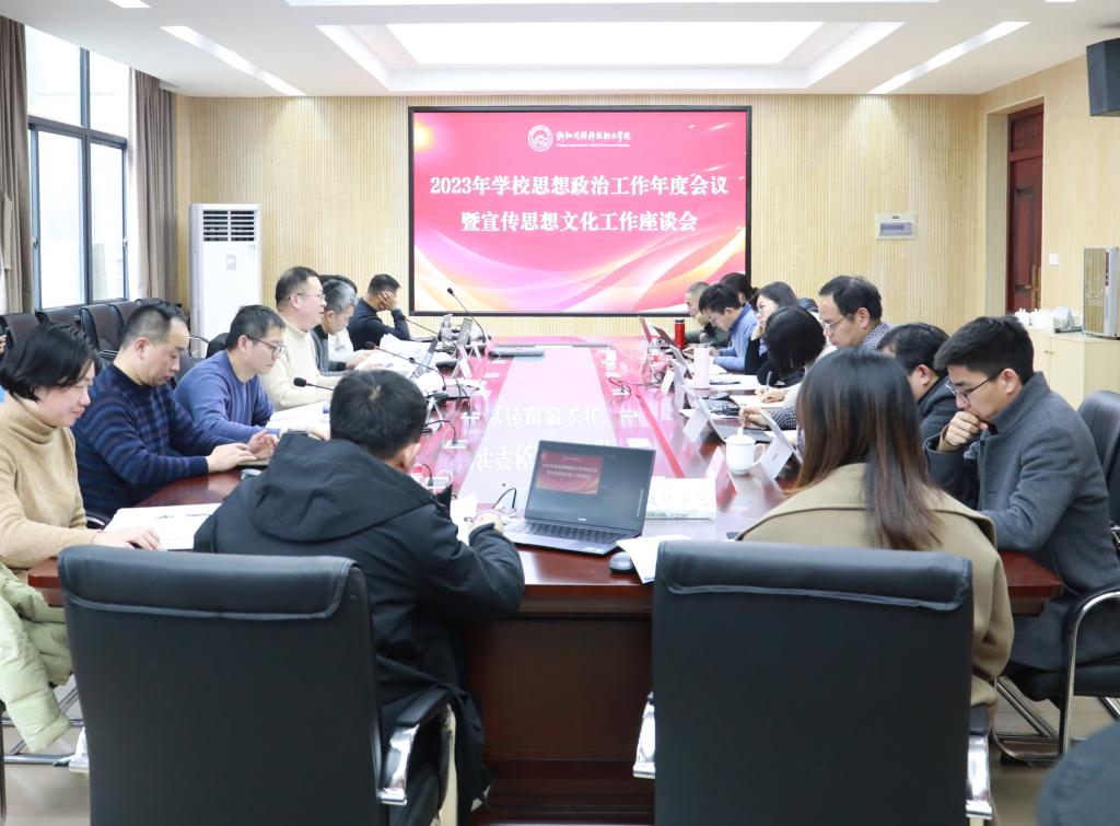 为深入学习贯彻习近平文化思想、习近平总书记考察浙江重要讲话精神,推进习近平总书记重要讲话精神在学校宣传思想文化阵地落地生根、落地见效,全面推进学校思想政治工作高质量发展,12月26日,学校召开2023年思想政治工作会议暨宣传思想文化工作座谈会。全体校领导出席会议,各部门及二级学院党政主要负责人,思政教师代表、思政辅导员代表、班主任代表、其他教职员工代表参加会议。会议由学校党委书记张勇主持。