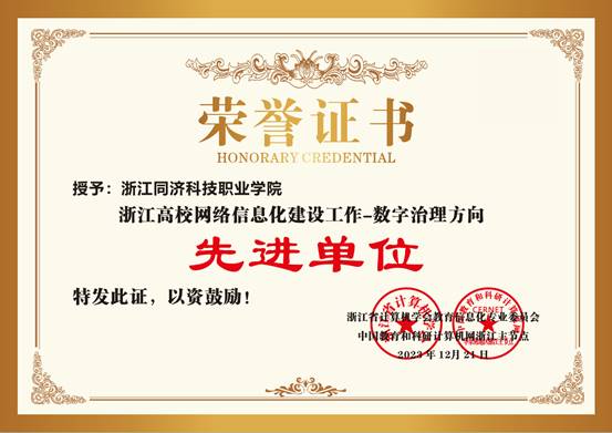 近日,浙江省计算机学会教育信息化专业委员会、中国教育和科研计算机网浙江主节点联合表彰了一批高校网络信息化建设先进单位和先进个人,我校荣获“浙江高校网络信息化建设工作先进单位——数字治理方向”及“浙江高校网络信息化建设工作先进单位——校园新基建方向”两项荣誉,范燕老师荣获“浙江高校网络信息化建设工作先进个人”。