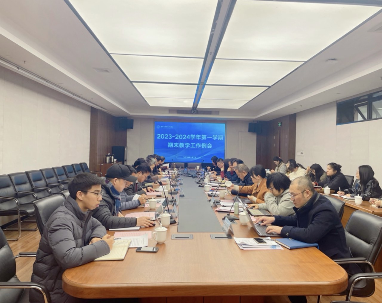近日,学校召开2023-2024学年第一学期期末教学工作例会。校长王卫标,副校长朱兆平出席会议,教务处、人事处、学工部、督导处、后勤处、图书馆、信息中心等部门负责人以及各二级学院负责人、教学副院长、全体教学秘书参加会议。会议由朱兆平副校长主持。