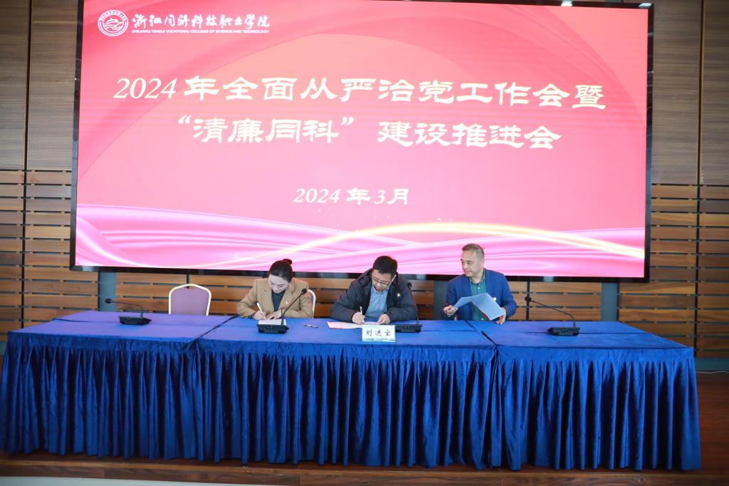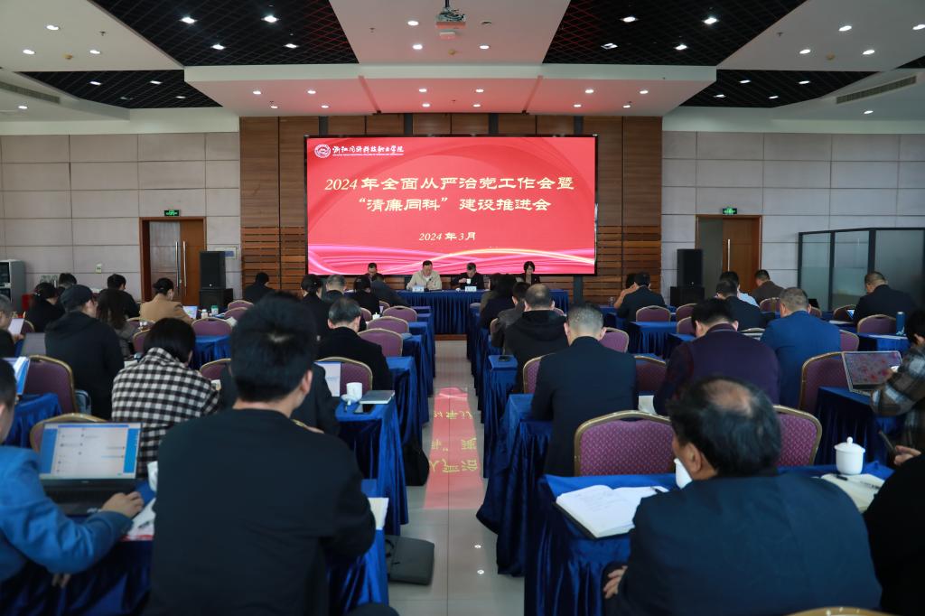 3月22日上午,学校召开2024年全面从严治党工作会暨“清廉同科”建设推进会,全体校领导、副处级及以上干部、各党总支(直属支部)委员、各党支部书记、纪委办全体人员参加会议。会议由党委副书记、校长王卫标主持。