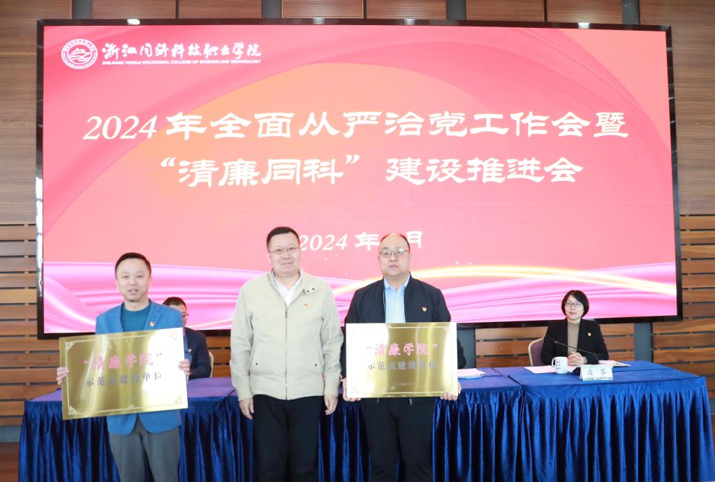 会上,张勇书记为学校清廉学院示范点建设单位水利学院和经信学院进行了授牌,资产处和机电学院作为职能部门和二级学院代表与分管(联系)校领导签订了2024年党风廉政建设责任书。