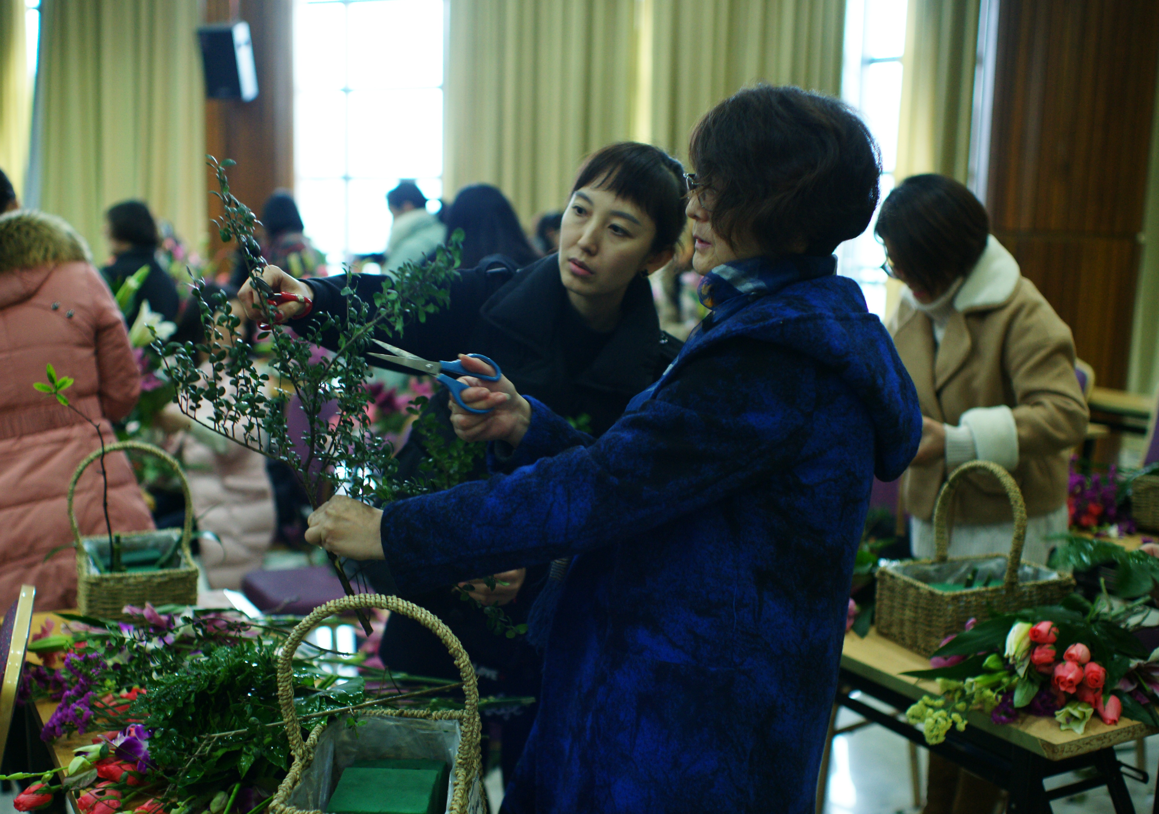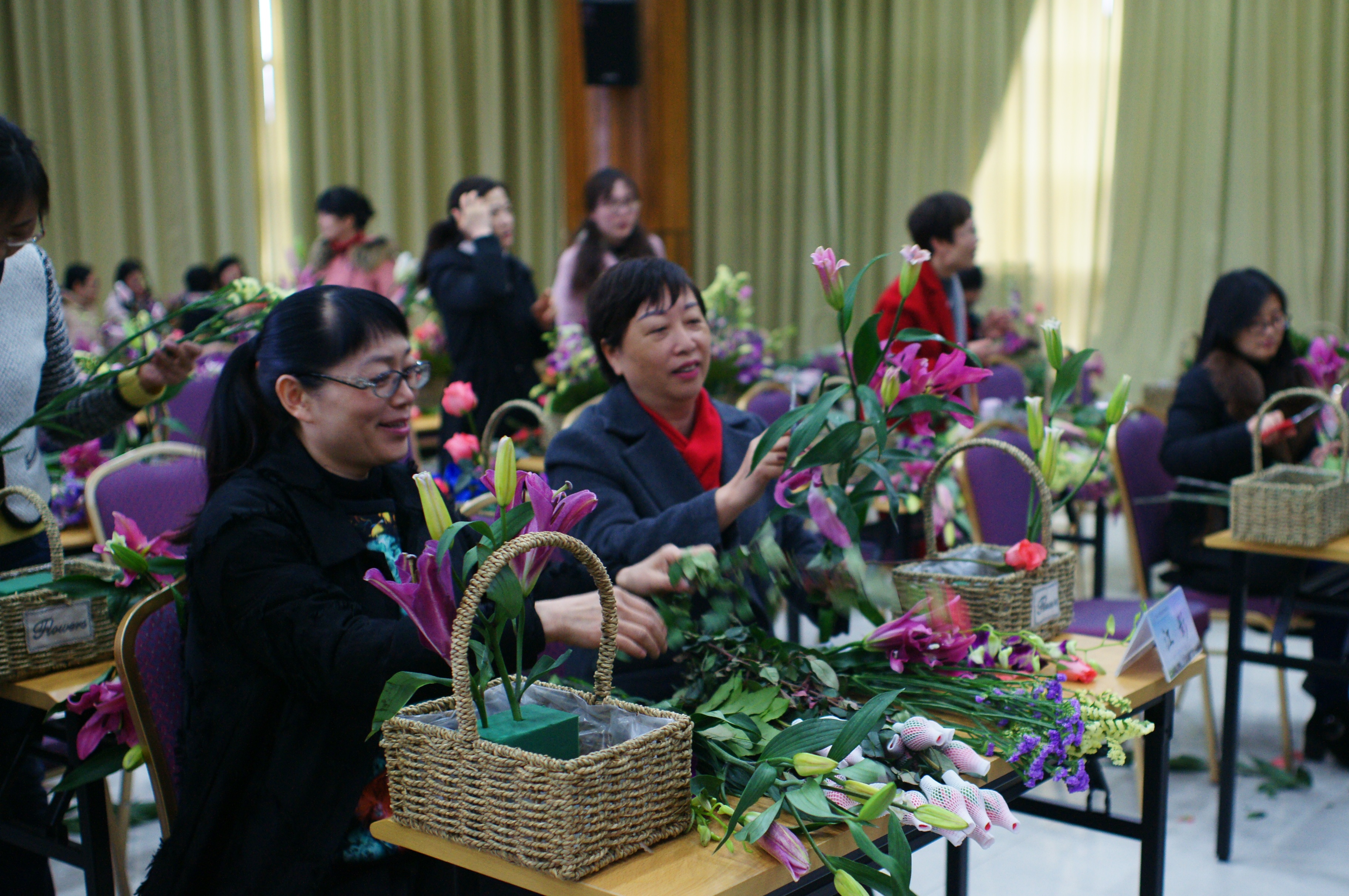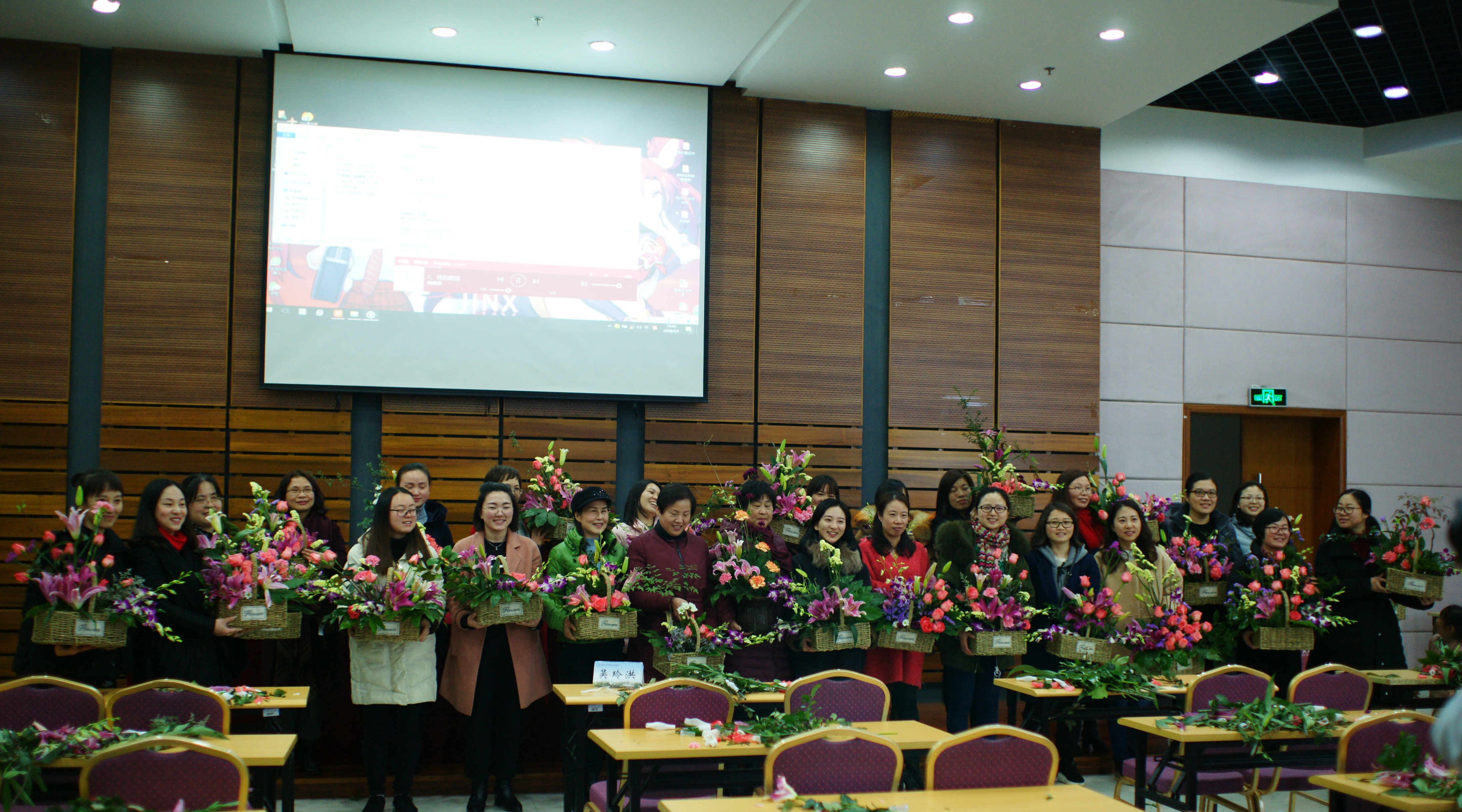 为庆祝三八妇女节,丰富我院女职工业余文化生活,提高教职工审美情趣和人文情怀。3月7日下午,学院工会女工委在行政楼三楼多功能厅,举办了“快乐工作•幸福生活”女职工插花艺术培训。学院领导江影书记,党委委员、纪委书记应芬和一百多位爱好插花艺术的老师们,共聚一堂,用鲜花扮靓生活,共度属于女职工自己的节日。