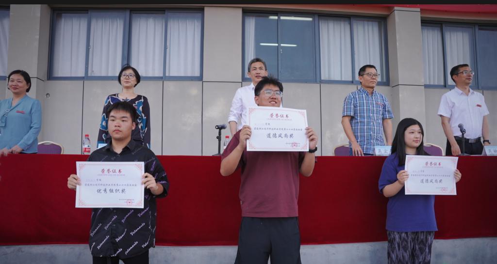 赛场上,运动健儿挥洒汗水、奋力拼搏,展现出了青春活力和拼搏精神;观众席上,师生呐喊助威、鼓舞人心,阵阵掌声和喝彩声是对运动员们最好的鼓励;赛场外,全体工作人员、志愿者们认真负责、不辞辛苦,保障比赛的进行,为选手送去关怀与温暖。经过两天的激烈角逐,各项赛事完美收官。建筑工程学院、经济与信息学院、水利工程学院分别获得团体总分前三名。经济与信息学院与建筑工程学院荣获体育道德风尚奖。水利工程学院、机电工程学院、艺术设计学院荣获组织奖。在本次运动会中,周佳琪同学打破学校女子200米原有纪录,再创新高。与会校领导为获奖集体颁发证书并留影。