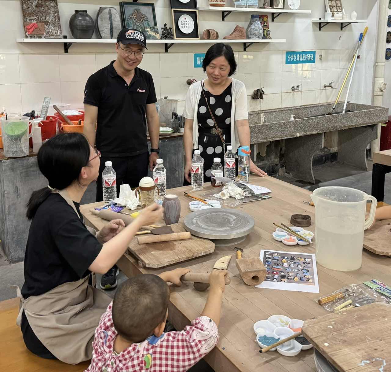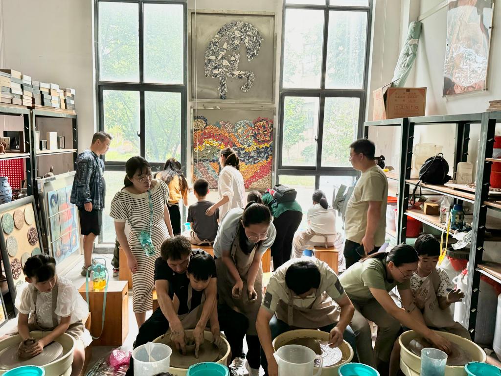 7月21日,由浙江省水利厅工会委员会主办,学校工会和我校艺术设计学院承办的第一期“走进水利”暑期职工亲子活动之“陶绘童年”研学活动在学校艺术实训楼103陶艺室举行。本次活动吸引了厅系统31个职工家庭、共70位职工亲子参加。学校党委委员、工会主席吴玲洪出席,水利厅工会、学校工会和艺设学院相关负责人参与活动。