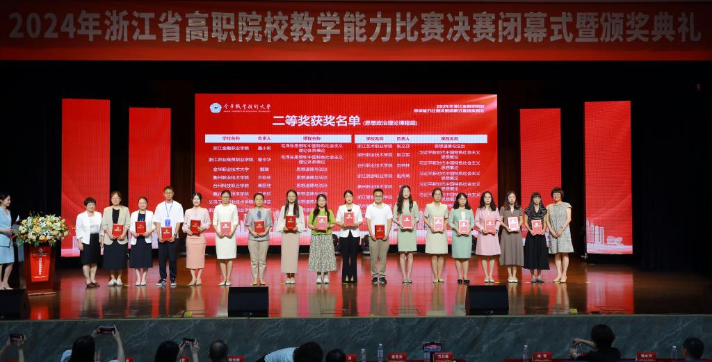 7月28日至30日,由浙江省教育厅主办的2024年浙江省高职院校教学能力比赛决赛在金华举行。经过激烈角逐,我校水利工程学院罗志洁团队、思想政治理论课程组教师个人赛张好徽荣获二等奖,建筑工程学院孔德娟团队、经济与信息学院李桂香团队、艺术设计学院戚峻玮团队、机电工程学院马婷婷团队荣获三等奖。