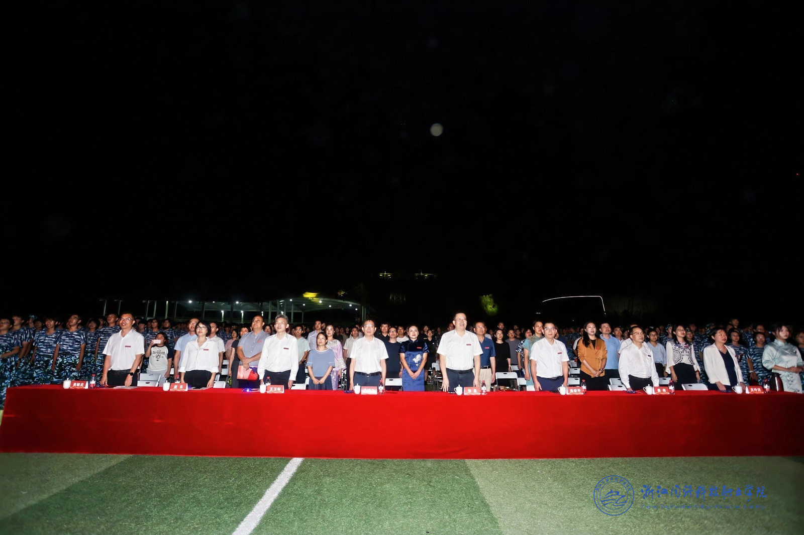 各二级学院院长、书记为新生代表佩戴校徽,并为在全国职业院校技能大赛、中国国际大学生创新大赛等各类竞赛中获奖的同学颁奖。全体新生在水利学院学生孙敏姿的带领下进行宣誓。