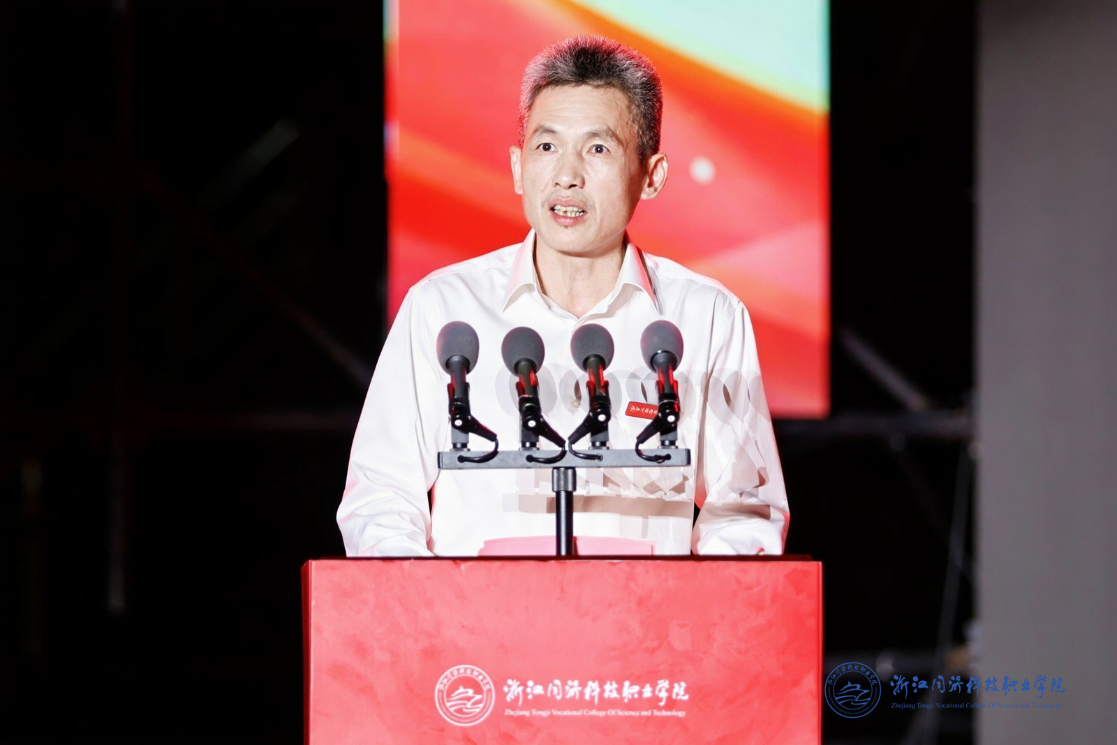 校长王卫标代表学校对新生表示热烈欢迎,寄语新生要以弄潮儿的姿态勇扛时代大旗,以奋斗者的姿态锻造卓越才能,以追光者的姿态抵近榜样星光,以今日之同科为新起点,引领承载人生梦想的航船,从钱塘江畔扬帆前行,驶向更加壮阔的征程!