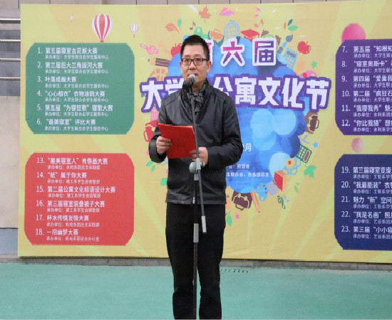 最后吴宏平院长致辞并宣布第六届公寓文化节开幕。他指出,公寓是学生学习、交流、生活的重要场所,加强公寓文化建设是学校育人的一件大事,要努力提高学生在公寓文化建设中的积极性和主动性,并对大家提四点要求:一是进一步加强公寓管理,促进学生公寓文化建设;二是大力推进思想政治进公寓,提升学生自我管理水平;三是树立新时代新风尚,倡导学生追求健康生活;四是充分发挥党团员、学生干部在文明寝室和校园文化建设中的积极作用。