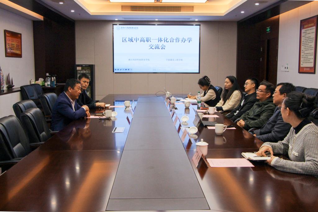 近日,宁波建设工程学校党总支书记陈贤伦一行来我校交流,共同商讨区域中高职一体化合作办学相关事宜。学校党委委员、副校长吴敏启,党委委员、组织部部长楼骏,相关部门(单位)负责人参加了此次交流会。