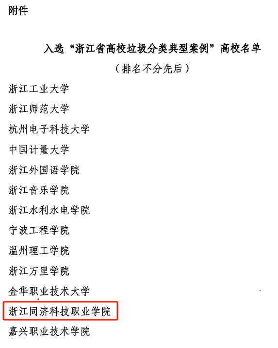 近日,学校“产教融合,激发垃圾分类新动能”项目成功荣获“浙江省高校垃圾分类典型案例”称号。这一殊荣不仅是对我校在垃圾分类工作中的创新实践的肯定,更是对我校在产教融合道路上积极探索与不懈努力的认可。