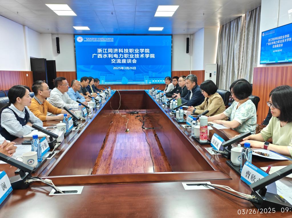 王卫标对广西水利电力职业技术学院的热情接待表示感谢,并全面介绍了我校的办学定位、发展概况,以及近年来在专业群建设、校企协同育人等方面取得的成效。王卫标指出,当前职业教育正处于转型升级的关键时期,期待两校能够立足新发展阶段,围绕新质生产力发展需求,在数字化教学改革、高水平师资队伍建设、国际化办学等领域开展深度合作,携手打造水利类高职院校协同发展的典范。