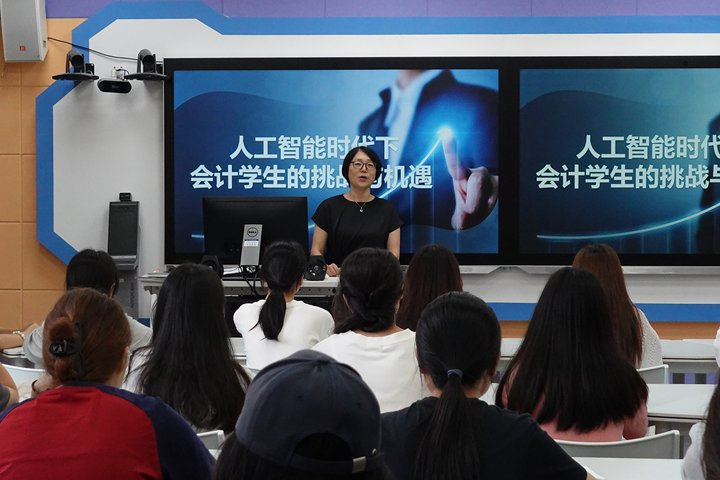 应芬紧密结合当前会计行业智能化转型的发展趋势,系统分析了人工智能技术对传统会计工作的深刻变革。她指出,在智能财务快速发展的背景下,会计专业学生既要看到技术革新带来的就业挑战,更要把握数字化转型创造的职业机遇。她建议同学们从三个方面做好职业准备:一是夯实专业基础,在学好会计核心课程的同时,主动掌握数据分析工具;二是注重实践锻炼,通过参与学科竞赛、寒暑假实习等方式积累实战经验;三是提升综合素质,着力培养团队协作、沟通表达等职业核心能力。她要求同学们牢固树立法治意识,严格遵守会计法律法规;恪守职业道德,在未来的工作中做到廉洁从业、诚信为本,切实保障企业资产安全。