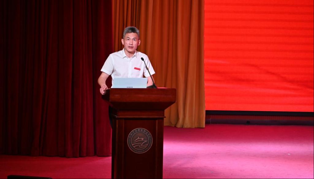 为深入学习贯彻党的二十届三中全会精神,创新推进“大思政课”建设,6月18日,由马克思主义学院与校团委联合主办的“以青春之声·传百年薪火”真理的味道·第五届“大学生讲党的故事”思政课实践教学成果展示活动在水韵剧场举行。校长王卫标,党委副书记、副校长吴宏平,党委委员、纪委书记应芬,党委委员、副校长吴敏启,党委委员、副校长刘进宝,党委委员、工会主席吴玲洪,党委委员、组织部部长楼骏出席活动,湖北水利水电职业技术学院马克思主义学院院长杨艳妮等兄弟院校代表,以及大中小学师生代表400余人参加现场活动。