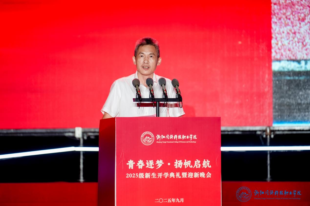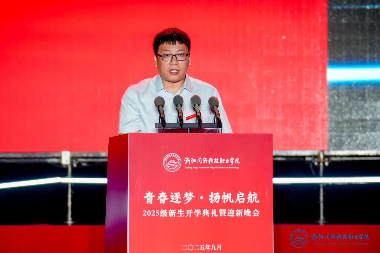 校长王卫标代表学校向全体新生表示热烈欢迎,并勉励大家作为“同科”新浪花,要以“奔涌向海”的坚定、“中流击水”的勇毅和“百川汇流”的智慧,践行“厚德、笃学、修能”的校训,勇担时代使命,书写强国有我的青春篇章。致辞真挚有力,引发全场热烈反响。