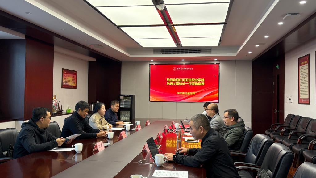 10月22日上午,红河卫生职业学院党委委员、副校长朱有才一行4人来我校交流访问,围绕数字化建设与校园治理开展深入座谈。学校党委委员、副校长吴敏启主持交流会议,学工部、安保部、信息中心相关负责人参与交流。