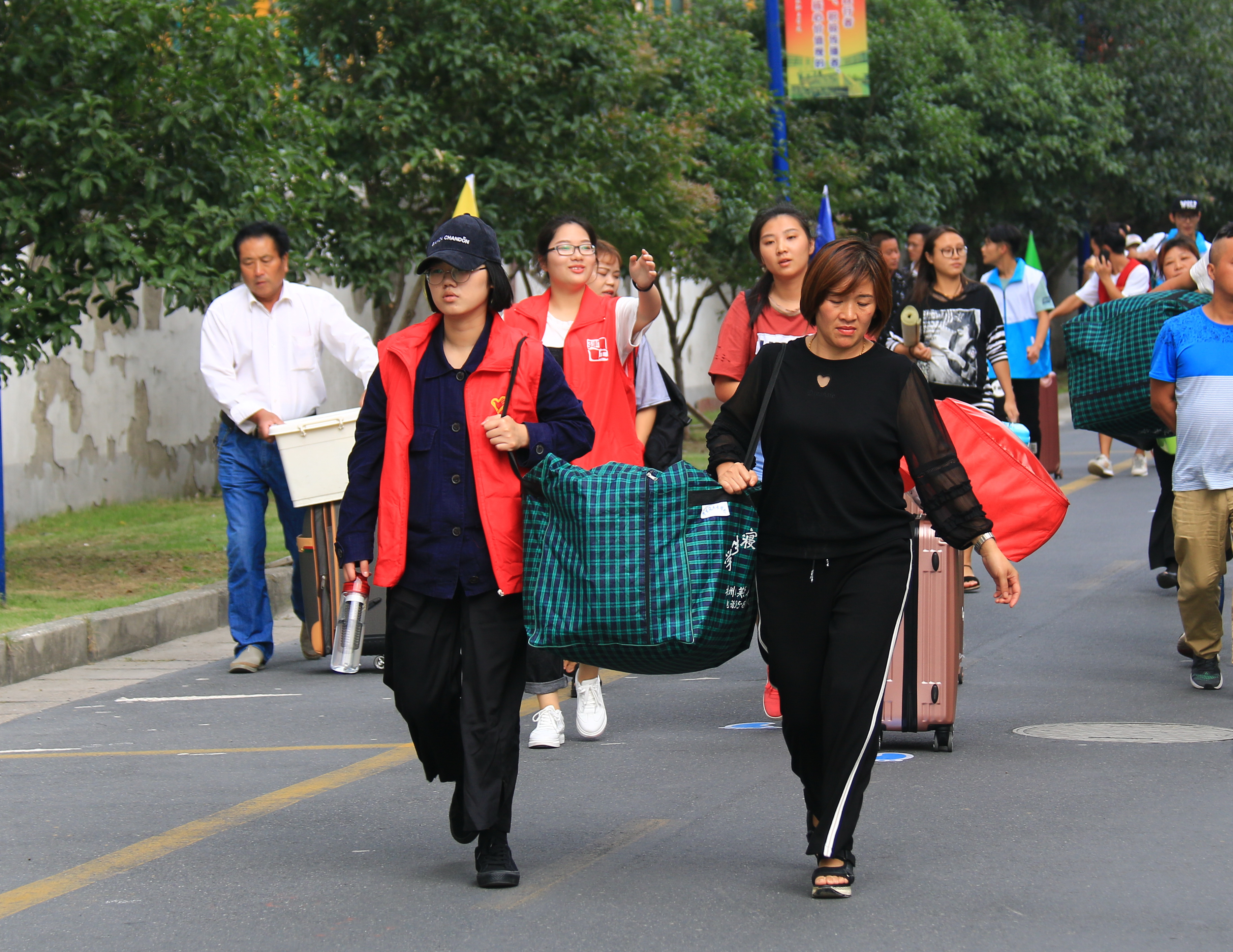 老师和志愿者们尽心尽力帮助新生完成报到工作