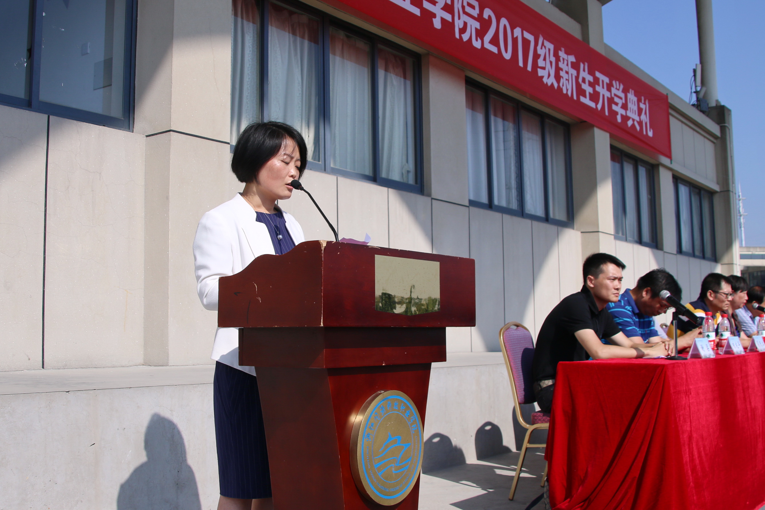 水利水电建筑工程专业0803班毕业生、宁波颢润生态建设有限公司副总经理谢梁,工程与经济管理系副主任、全国水利职教名师景秀眉,水工1702班的柳冰琳分别作为校友代表、教师代表、新生代表发言。