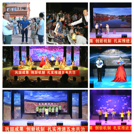 演出以“水之源”、“水之语”、“水之梦”三大篇章为主轴,串起歌曲《踏歌水乡》、诗朗诵《如果我是一滴水》、小品《护河使者》、手语舞《感恩的心》、军体拳《治水先锋队》等15个“水”韵味深厚的文艺节目,艺术表演形式多样,节目精彩纷呈。节目中间穿插的知识问答,让居民们在欣赏节目的同时,增长了“五水共治”水利典型案例相关知识,从而使五水共治的理念更加深入人心。此次演出大力宣扬了“治污水、防洪水、排涝水、保供水、抓节水”等“五水共治”理念,激发了广大群众实现中国梦的高涨热情。