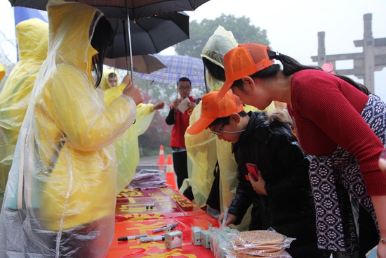 同学们冒雨在湘湖开展宣传活动