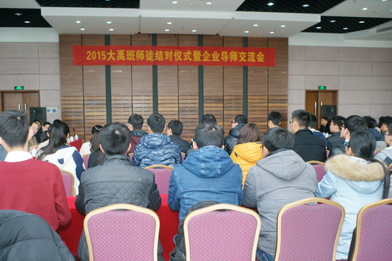 1月14日下午,我院在行政楼三楼多功能厅举行了2015“大禹班”师徒结对仪式暨企业导师交流会。学院院长梁国钱、副院长吴宏平、郭雪莽出席仪式,教务处、水利系等相关部门负责人及2015“大禹班”班主任、辅导员共同见证了此次结对仪式。2015“大禹班”30位同学与来自省各地一级企业的12位导师结对。此次交流会还邀请了部分2014“大禹班”企业导师和学生参加交流。仪式由郭雪莽副院长主持。