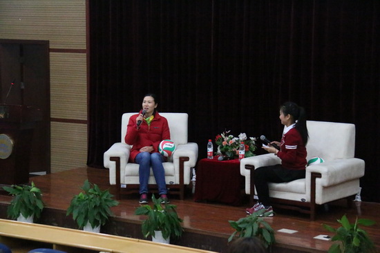 访谈会上,周苏红为同学们讲述了她从长兴小镇姑娘成长为奥运冠军道路上的一个个感人励志的故事。几多心酸,几多欢笑,训练场上的咬牙坚持,运动场上的飒爽身姿,赛场上的奋力拼搏,都源于她对排球无比的热爱和对祖国母亲无限的深情。