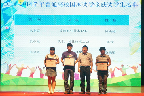 在典礼上,学院领导还分别向获得国家奖学金、省级优秀毕业生荣誉的毕业生颁奖,为各毕业班发放毕业证。最后,典礼在集合各毕业生祝语的视频《千言万语说给同科听》及师生大合唱《真心英雄》的歌声中落幕。