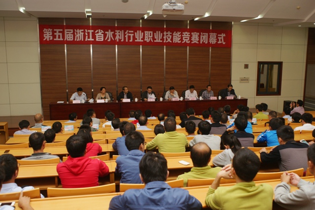 冯强副厅长致闭幕词。他首先向全体获奖人员和获奖单位表示祝贺。他指出,水利系统技术工人是推进实施“五水共治”的强大支撑力量,是浙江水利工作的基石和栋梁,我们要高度重视水利技能人才的培养和使用,大力营造技能人才健康成长的良好环境,为更多更快地培养高水平技能人才而不懈努力。他强调,要深入开展改善技能人才成长环境的研究,不断完善高技能人才队伍建设的政策措施;要不断完善技能人才成长的激励机制,加强对一线操作人员的岗位培训;要加强水利工程管理信息化条件下的专业实训和专业技能交流。做到不唯学历、不唯职称,进一步在加强水利技能人才的培养上狠下功夫。将大赛所激发出来的的学技能、练技能的热情,用来大力助推全省“五水共治”工作更好更快地开展。