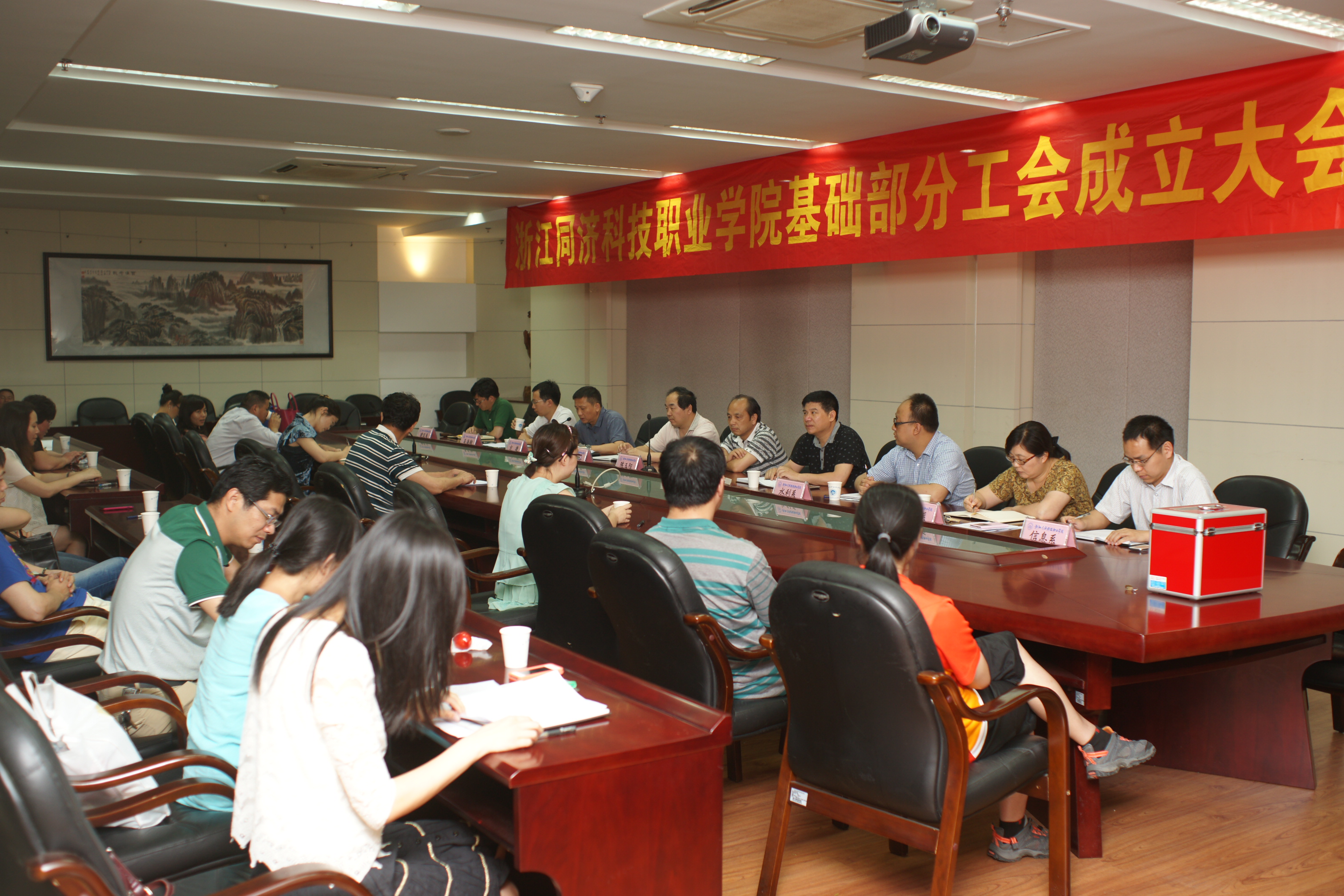 6月3日下午,基础部在行政楼二楼会议室召开全体教职工(工会会员)大会,大会通过了基础部分工会委员会选举办法,选举产生了基础部分工会首届委员会。会议由分工会筹备组成员方捷主持。学院副院长郭雪莽、工会主席陈玉阳出席了大会并作重要讲话。学院工会副主席陈安正和五系分工会代表应邀参加本次大会。