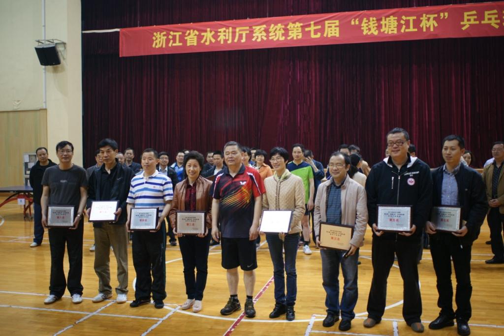 经过为期三天半的角逐,推广中心获得领导干部团体赛第一名,厅机关二队、工程局、钱管局、钱江水利、厅机关一队、质保联队、设计院分获二至八名;男子团体赛第一名由设计院获得,同济学院、水院分获二三名;女子团子赛第一名由水院获得,钱江水利、同济学院分获二三名;王晓峰(设计院)、周宝森(钱管局)、胡焕军(钱江水利)获得男子甲组前三名,沈逸(同济学院)、董庆(水院)、黄生江(推广中心)分获男子乙组前三名;女子甲组前三名为任立新(同济学院)、俞超燕(推广中心)、杨爱琴(同济学院)、女子乙组前三名分别是王梦乔(水院)、叶琳(钱江水利)、刘艳(钱江水利);我院获得最佳组织奖。