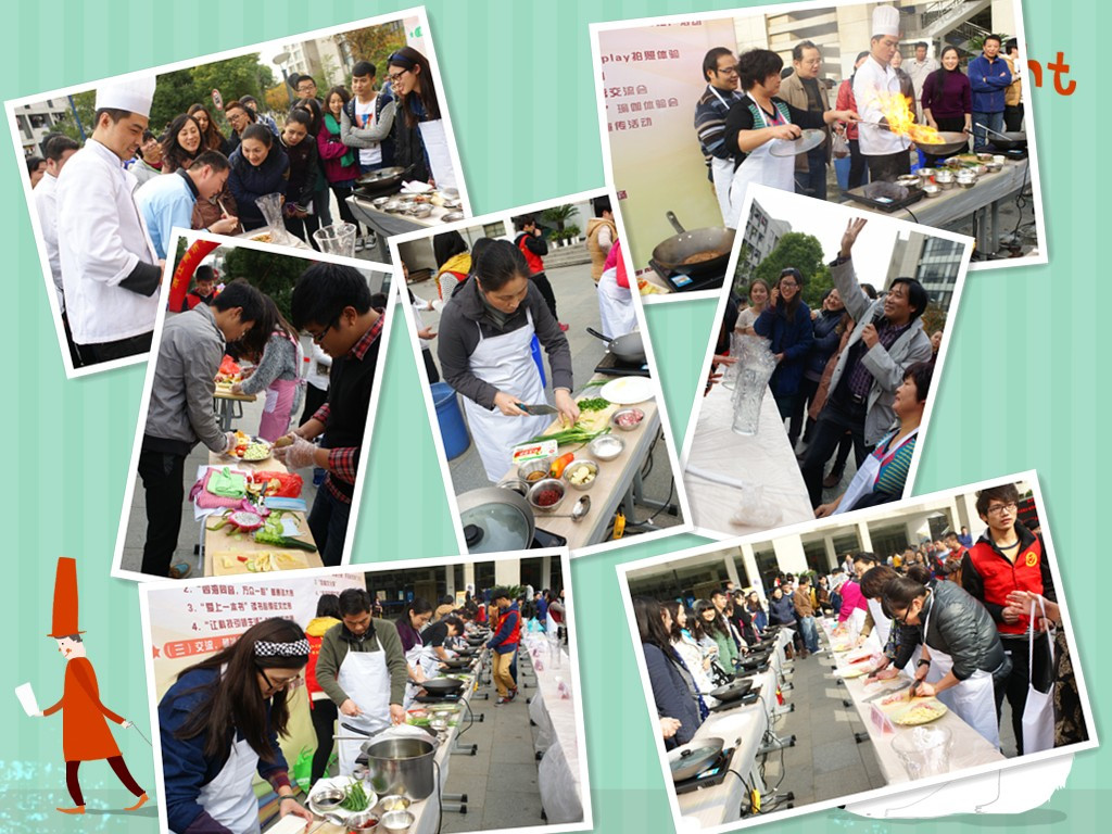 在美食节开幕当天,师生们品尝了五湖四海的美味佳肴,欣赏了教师在厨台上的风采,亲临了疯狂的“蔬果并战”,也了解到健康生活的常识。